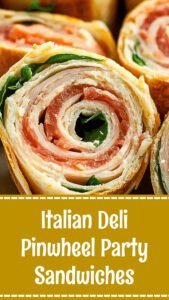 Easy Italian Deli Pinwheel Party Sandwiches! The ultimate make-ahead appetizer for showers, game day & parties. Always a crowd favorite! #partysandwiches, #pinwheelsandwich, #italianappetizer, #easypartyfood, #makeaheadappetizers